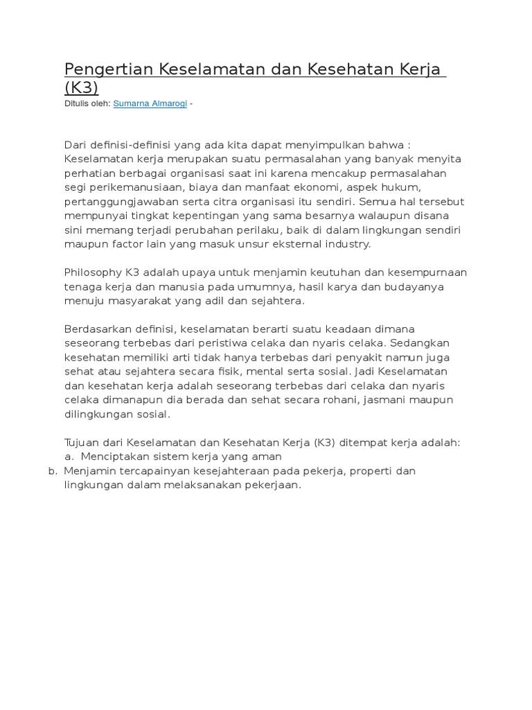 Pengertian Keselamatan Dan Kesehatan Kerja Pdf